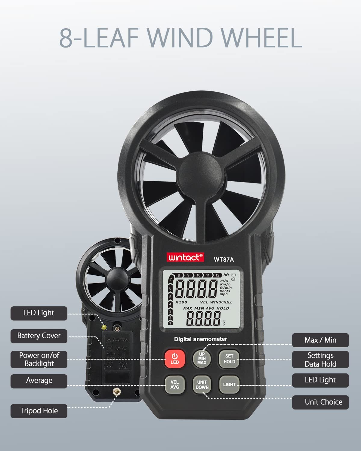 Wintact Handheld Anemometer, Digital Vane Wind Speed Meter Gauge——WT87A