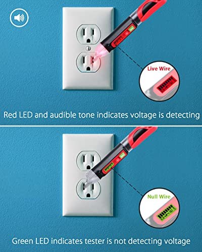 • Easy to Use: Place the tip of a non-contact voltage tester near a device or wire where AC voltage is present. by emitting an ear-piercing beep or the tip glowing red for visual indication of high voltage at work. the frequency of the beeping sound will increase if the device has detected a higher voltage.