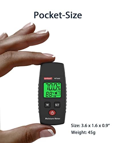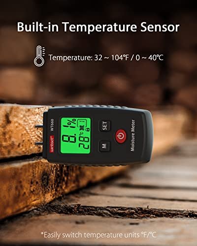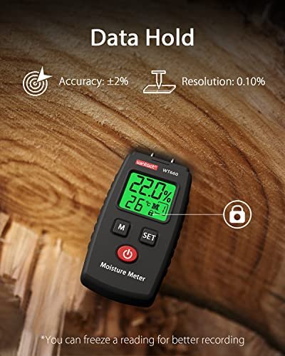 Fast & Accurate: The moisture meter measuring the moisture content in wooden materials between a range of 6 to 70% maximum, and building material measuring ranges of 0% to 15.2% maximum, you can get accurate up to ±2% (0.10% resolution) readings in 0.5 seconds