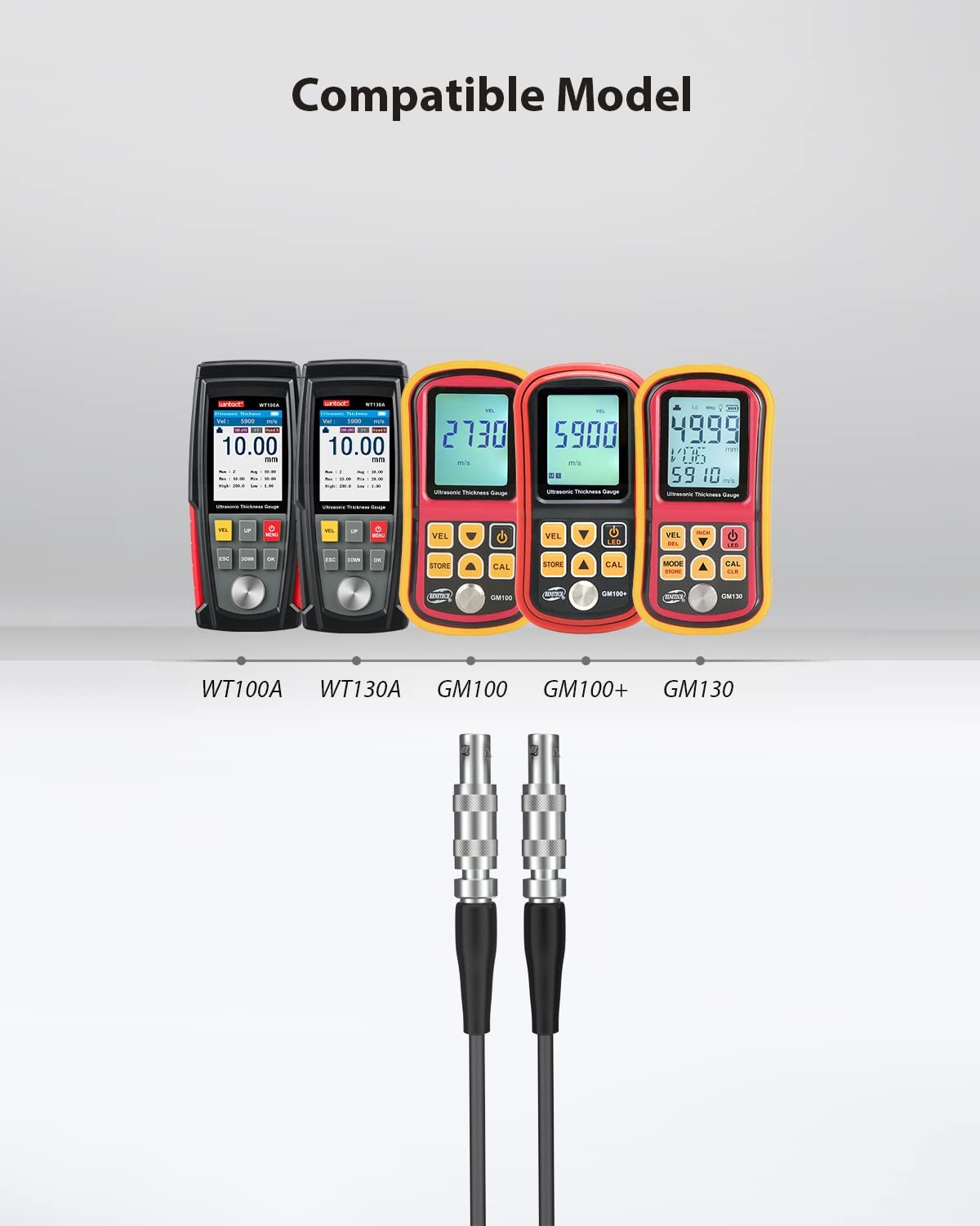 • Versatile probe collection: Compatible with several models of ultrasonic thickness gauge, including WT100A, WT130A, GM100, GM100+, and GM130, offering flexibility and convenience for different applications.